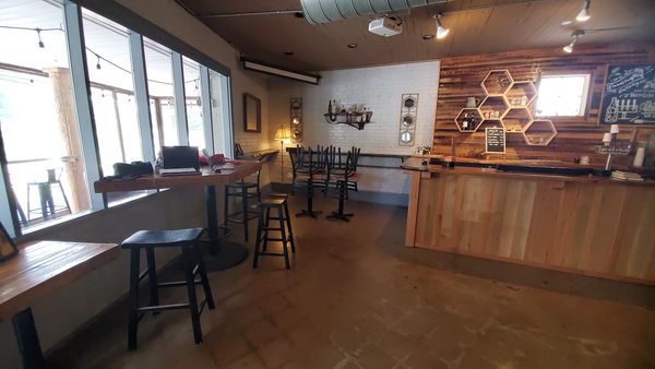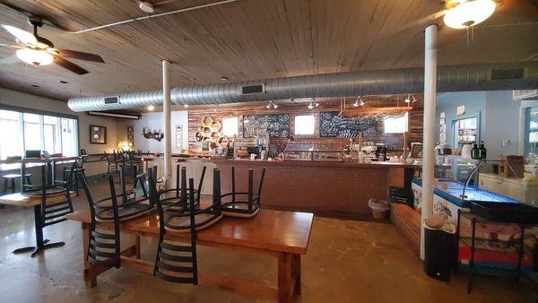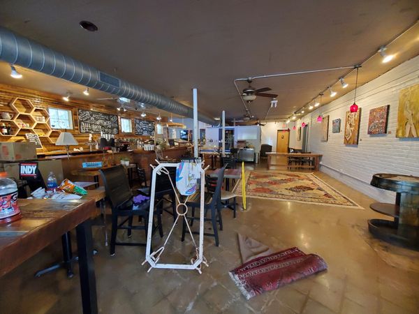 The main dining room and bar area on day one
