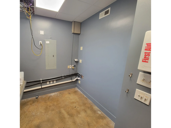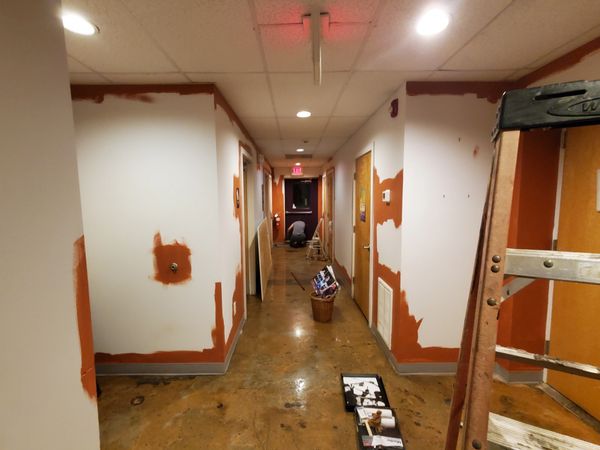 Painting the hallway toward the bathrooms