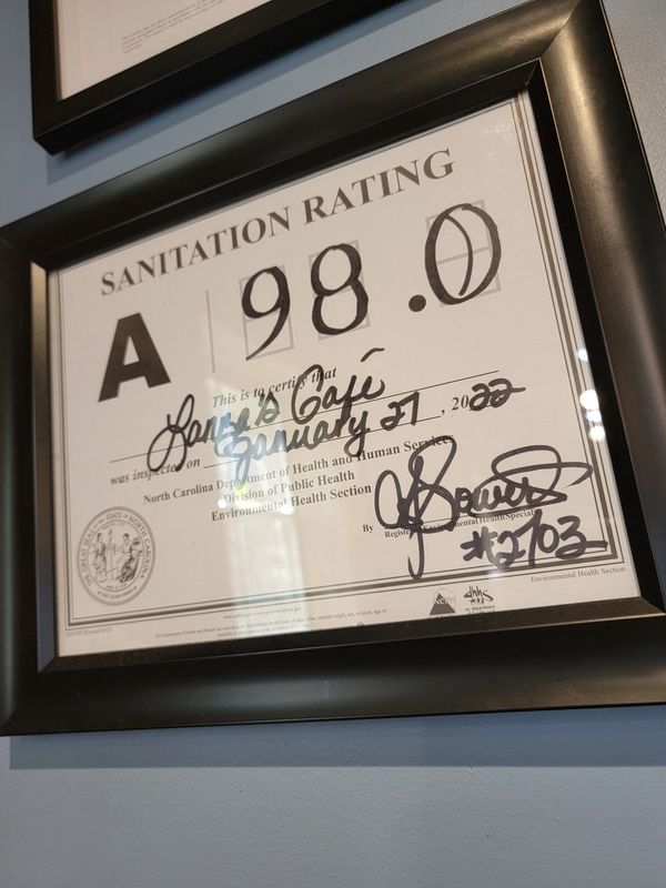 Our first sanitation rating! Not too shabby as we navigated our way through the endless abyss of health codes