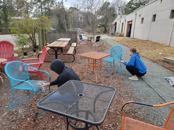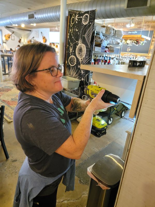All hands are always on deck to keep the cafe looking good!